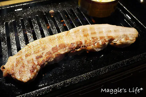 烤好的豬五花單吃很有嚼勁,紮實又有滿滿的豬肉香,老闆親自測試多間肉品廠商,終於找到品質優良的肉品來源,對提供消費者的品質也很講究。
