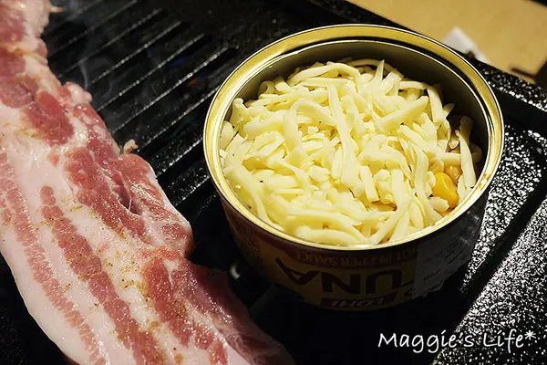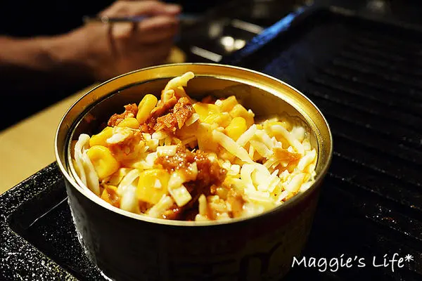 「辣味金槍魚罐頭」$199,這道是韓國進口的,特別加入玉米和起司調味,在烤爐上烤,讓起司融化。