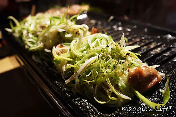 「雞蔥混麻油」$89,大量的細切蔥絲放入烤爐中烤,帶走辛辣嗆味,但留下滿滿香氣,和剛烤熟的雞肉拼盤混合在一起,蔥香肉香麻油香都有了,吃起來很夠味,一點都不想放過,是今天所有料理中最滿意的一道佳餚。