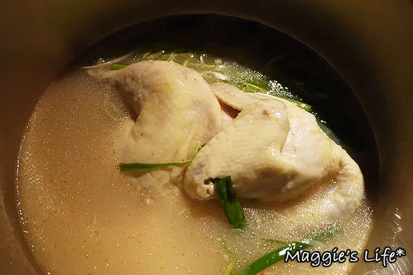 在持續加熱中服務人員也過來幫我們剪好半隻雞,雞肉的口感偏軟,相對也比較好咬。