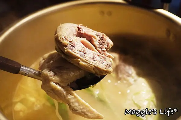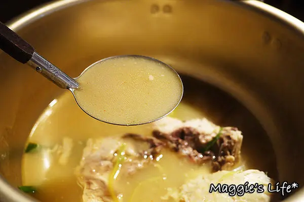湯頭的部份是乳白色的湯汁,喝起來頗為濃郁,不死鹹,吃完這鍋後,一餐下來也差不多飽了。
