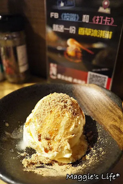 打卡送的香草冰淇淋,依打卡人數贈送,灑上黃豆粉,香甜可口。