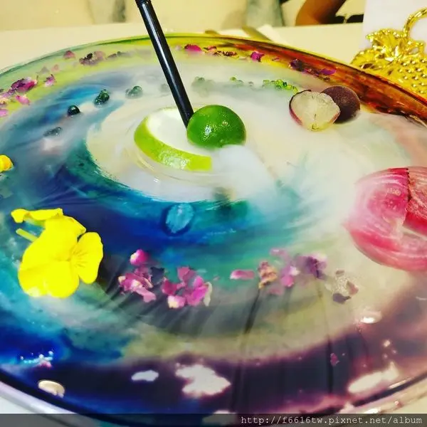 梵谷星空 這如畫般的彩盤居然是調酒,搭配渺渺流動煙霧,真的很夢幻,餐廳以梵谷名畫 星夜 Starry Night 概念呈現 喝酒過量 有礙健康