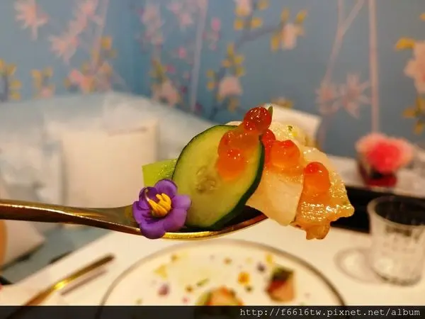 名媛品嚐後讚不絕口的是 花季鮭魚卵蔬菜檸檬紅甘魚
