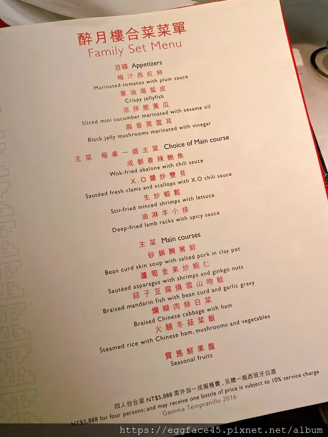 (上海醉月樓菜單)