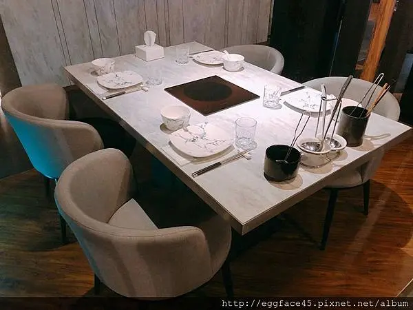 大理石紋的長桌奢華又唯美,空氣中流動著網美氛圍,讓人一坐下就優雅了起來。