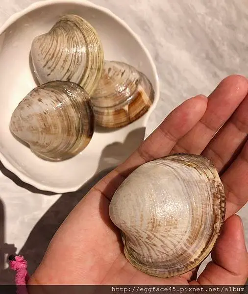 淡白色外殼的牛奶貝,比一般的文蛤大上2~3倍,