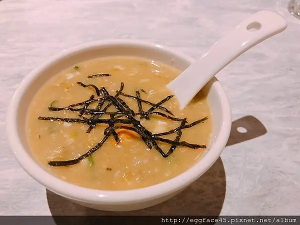 飽滿的蟹膏、蟹肉、雞蛋,把雪白的粥染成金黃,
