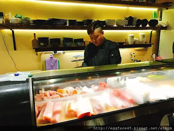 ▼吧台前放滿了新鮮魚貨,師傅正忙碌的準備著美味的料理。