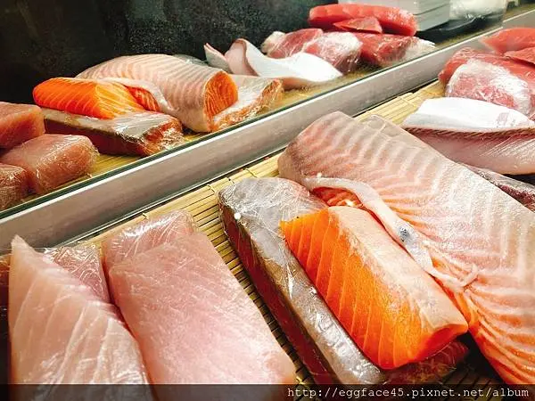 鮭魚肚超大一片,油脂分佈細緻、軟嫩有口感,