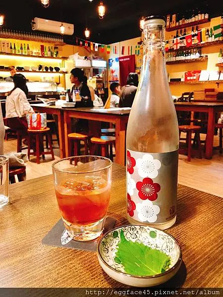 送上梅酒的同時,附送一片紫蘇葉,老闆說先在手掌上拍打一下,