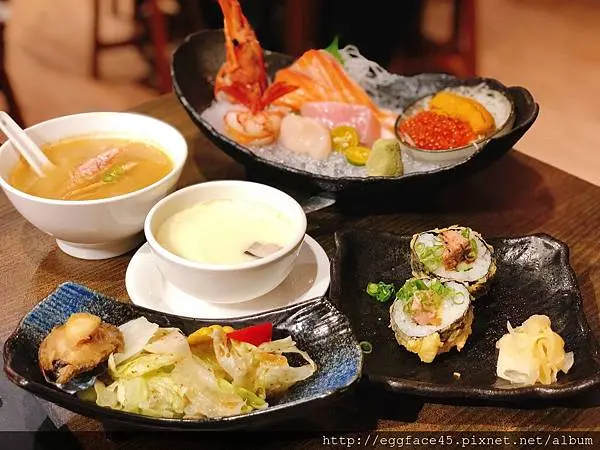 光是套餐中的「刺身拼盤」就含有六種新鮮的刺身,分別為: