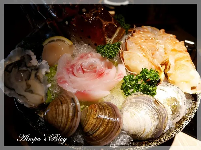 大龍蝦、生食級干貝、生蠔、鯛魚玫瑰花、赤嘴貝。