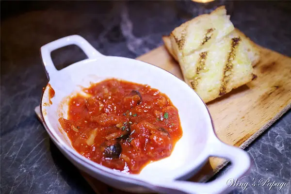 今日的手工麵包搭配的是茄汁燉百花菜,每日提供的配菜略有不同。