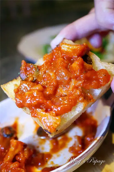 沾覆蒜香辣椒醬汁,味道極具香氣卻不會太過嗆辣,