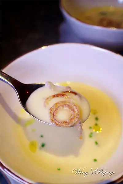 這道很特別的是除了本身以洋蔥為基底熬煮的濃湯外,