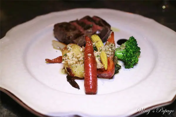 肉質非常厚實,一旁自家農場供應的季節蔬菜則是搭配蒜味醬。