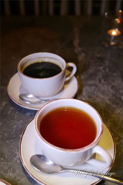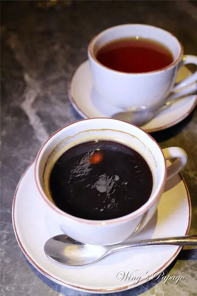 熱美式咖啡滋味濃郁略帶苦香,錫蘭紅茶茶香芳醇,