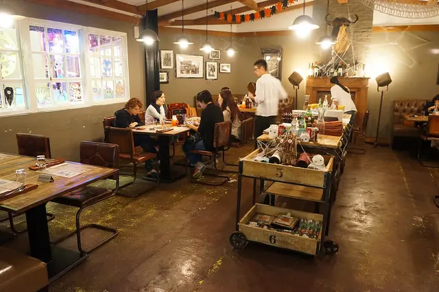 餐廳的氣氛帶點美式復古風,開放式的廚房讓人倍感安心,來的時候剛好碰上萬聖節,佈置的還挺有氣氛的,是的,不用懷疑,這是萬聖節之錢的食記,我還有一堆去年的食記都還沒寫完,不過好像沒有克麗兒扯,她到現在還再寫前年的遊記,我寫去年的食記還只是小兒科XDD