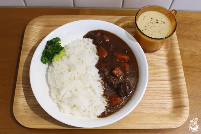 十分入味好下飯,帶有微微的酒香,胡蘿蔔是長時間以小火燉煮,連不愛胡蘿蔔的我也都全部吃光了!另外,有附一碗真材實料的玉米濃湯,不是水水的那種,而是用玉米粒打出來的,喝完會想續杯。