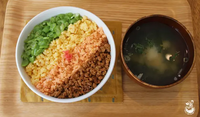 簡單四色飯的視覺畫面很療癒,四樣配料各司其職並相輔相成交織出令人難忘的滋味,整體吃起來清爽且不油膩。