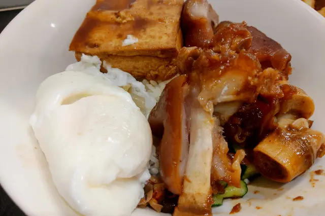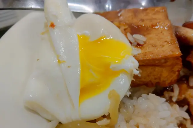 還有一顆半熟蛋,整體的搭配視覺效果相當棒,難怪會叫做銷魂豬腳飯。
