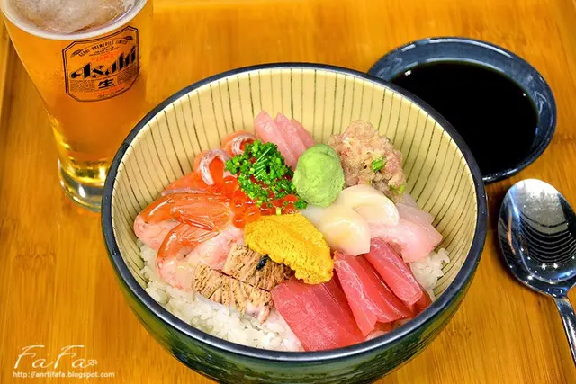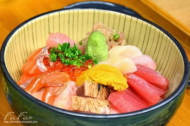 炙燒鰹魚、加拿大海膽、干貝、甜蝦,鮭魚卵在以蝦夷蔥點綴,擺盤細膩集中讓整體看來頗豐富,