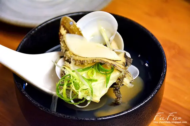 小小一碗清湯都被Q彈鮑片以及蛤蠣填的滿滿滿,可惜清湯胡椒味超重,喝不出清湯鮮甜味。