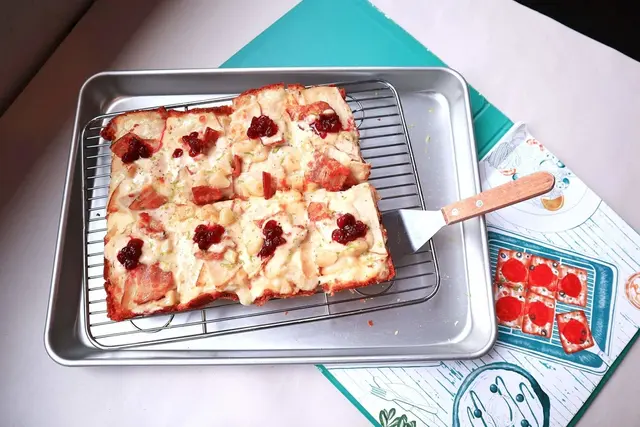 緣於美國密西根州的底特律是「汽車之都」,在地人利用汽車廠裡的小零件的長方型拖盤烤Pizza,先將pizza烤好再淋醬、舖上食材,頗有深度方方正正外皮酥香就是底特律獨有的面貌。