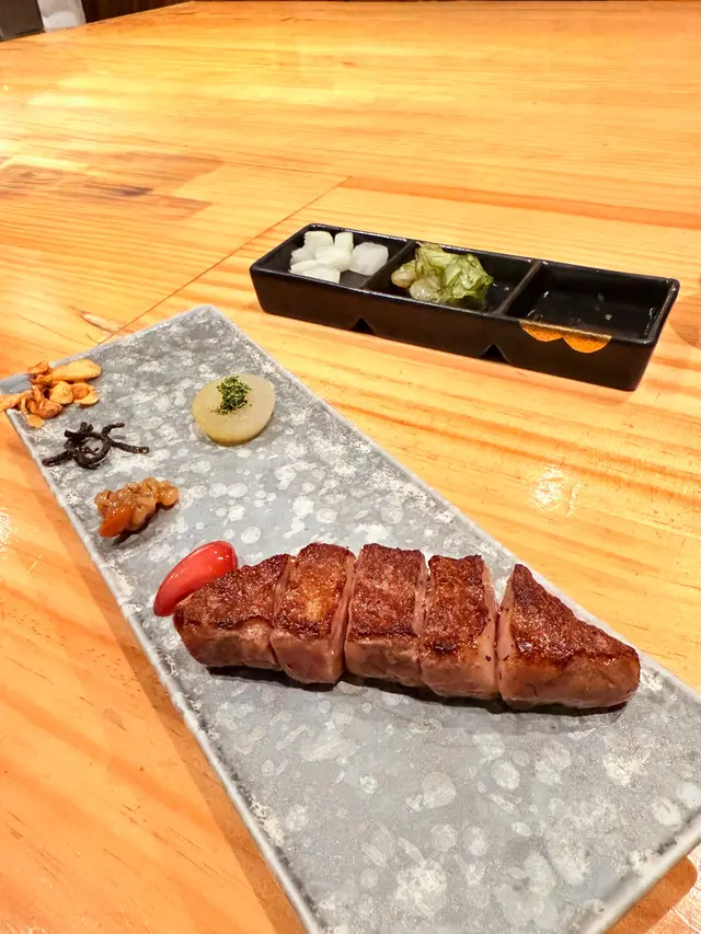𓌉◯𓇋稻燒日本A5黑毛和牛 - 重點嘅和牛黎喇,先喺鐵板煎香再煙燻增香,輔上四種配菜,一塊和牛多種風味
