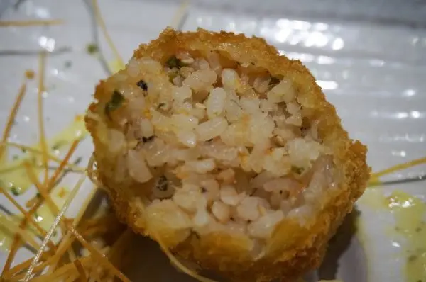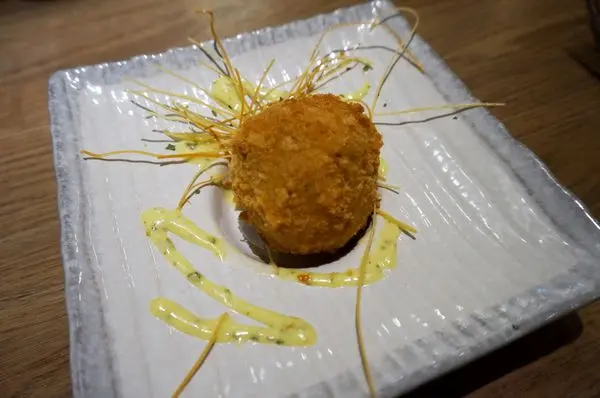 份量挺扎實的炸飯糰,裡頭看的到粉色的鮭魚肉,吃起來也有恬恬淡淡的魚肉味