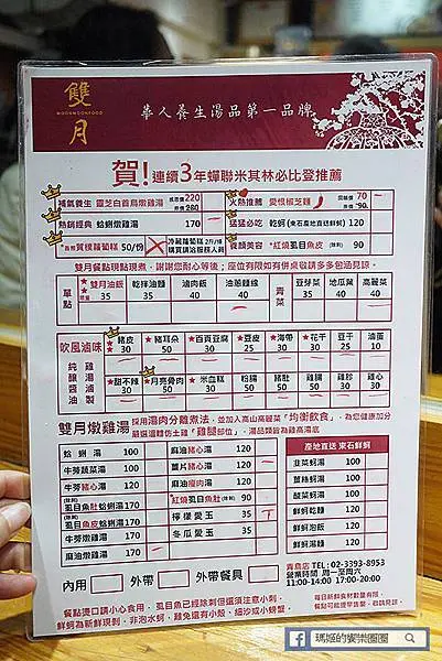 雙月的好味道更連續三年榮獲米其林必比登的推薦!這種好味道也難怪讓分店一間一間開,讓更多人可以品嚐到米其林等級的美食。菜單上除了有幾種口味的養生雞湯可選擇外,吹風滷味、油飯、乾拌油麵、滷肉飯、油蔥麵線和新推出的愛恨椒芝麵,每一樣都讓人不想錯過!