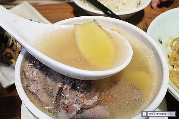 雞肉的部份是採用新鮮的仿土雞腿肉,切成大塊去熬煮,光從色澤就能看到雞肉裡滿是湯汁的精華,吃起來的口感滑嫩中又帶有嚼勁,愛吃雞湯的人一定也和我一樣會喜歡這種口感。