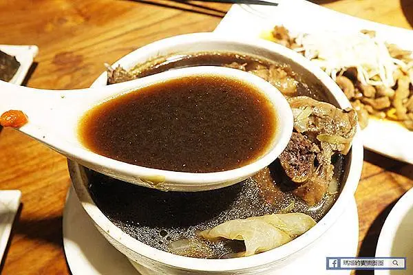 深褐色的湯頭有著濃厚的中藥甘醇不苦澀的風味,帶有微微的甜度會顛覆害怕中藥苦味朋友的觀感,是好喝順口的中藥湯頭。
