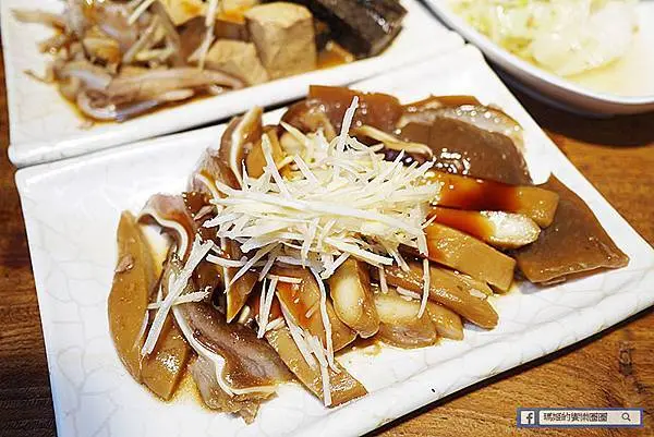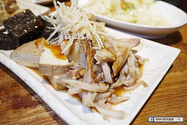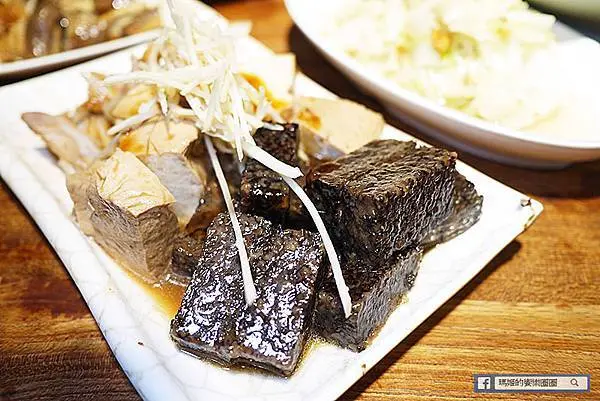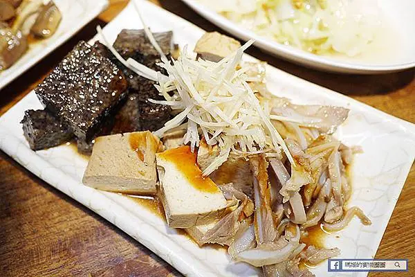 這盤有米血糕、百頁和月亮骨肉,這月亮骨肉第一次吃,是豬肉的某一部位帶有軟骨形狀像月亮而得名,吃起來帶有骨邊的肉香,是挺不錯的下酒菜。