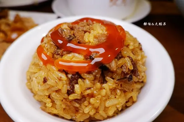 粒粒分明的油飯是人工拌炒的,香菇、豬肉等配料也很實在,幾乎每一口都可以吃到料,建議可以先嚐幾口原味後,再淋上店家特製醬料,甜鹹好滋味