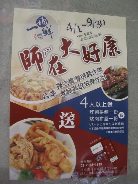 4/1到9/30師大的老師和學生在這一個期間還有4人以上美拼盤一份.還滿不錯的呢