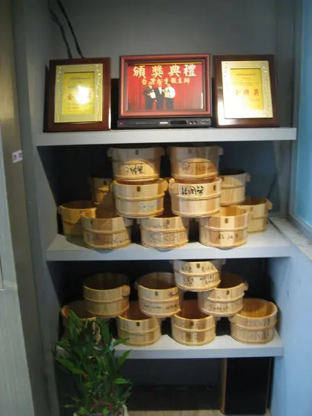 這是一樓要下去地下室的一角.有得獎的獎牌和名人簽名的木桶