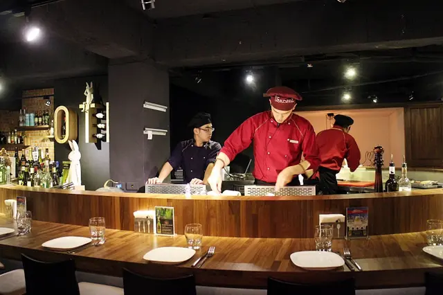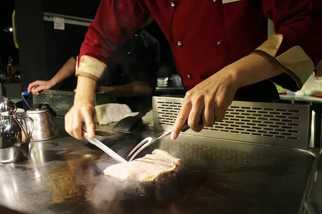 推開門,映入眼簾是圓弧形的鐵板燒吧台