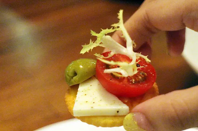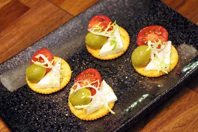 馬札瑞拉起司、番茄切丁、橄欖和小圓餅乾,入口味道比預期驚喜,非常開胃爽口