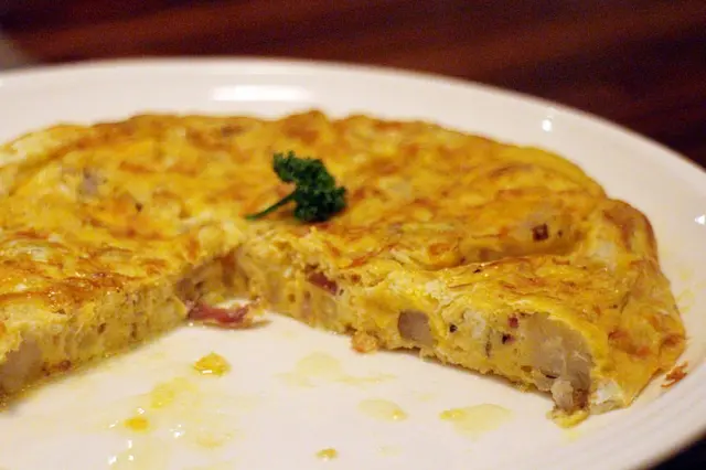 如果吃過燉煮非常久的大骨湯,令人印象深刻就是湯裡的紅蘿蔔和馬鈴薯非常鬆軟、入口即化,這烘蛋裡的馬鈴薯就這個模樣,和坊間一般的西班牙烘蛋不太相同