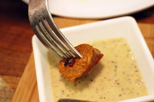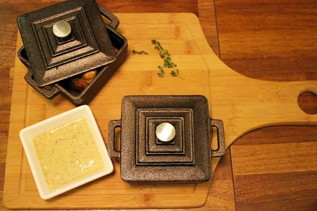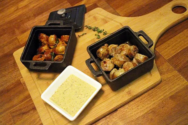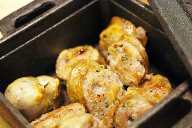 推薦下酒菜必點,混血香腸放在鑄鐵鍋裡噢!可以恆溫~所以當下酒菜不疾不徐最合適了