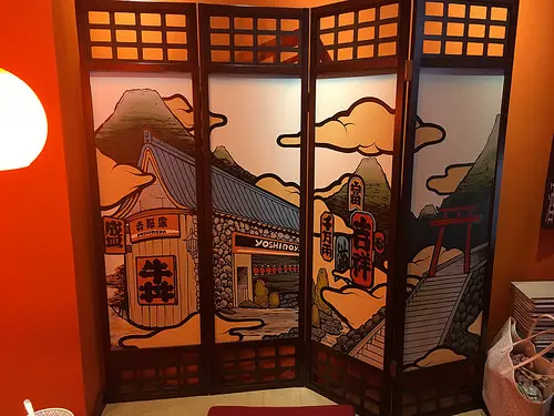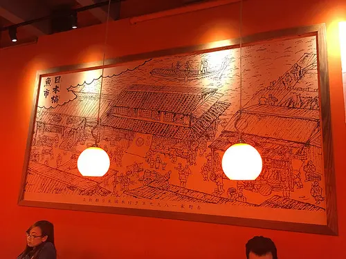 牆壁掛著很大幅 寫著吉野家1899年創立的圖