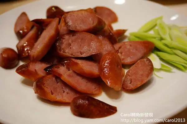 鮪魚香腸是老闆手工功夫菜,使用鮪魚、豬腳肉製成,