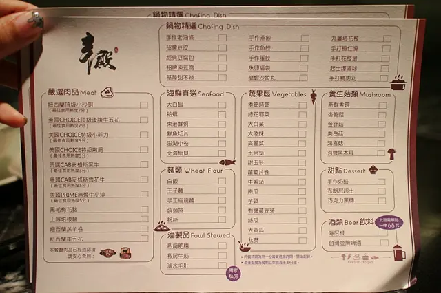 第一輪菜單選擇,是肉品梭哈和時蔬香菇等