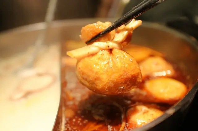 麻辣鍋不能沒有老油條,大概像福爾摩斯不能沒有華生,喜歡油條一半入鍋吸飽飽紅湯,另一半仍保留酥脆