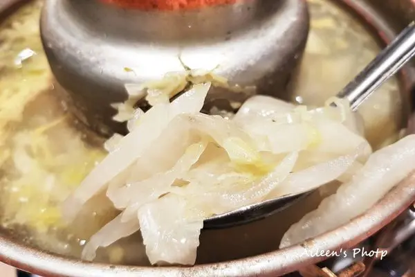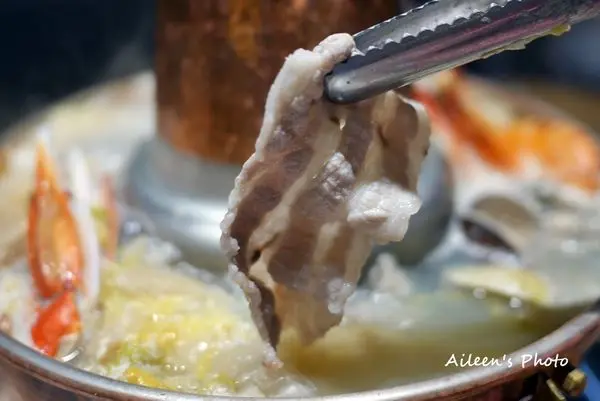 鍋底鋪了滿滿的酸菜,讓湯底聞起來味道酸溜夠味,聽說酸菜都是老闆自己醃漬的。