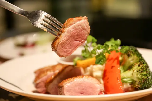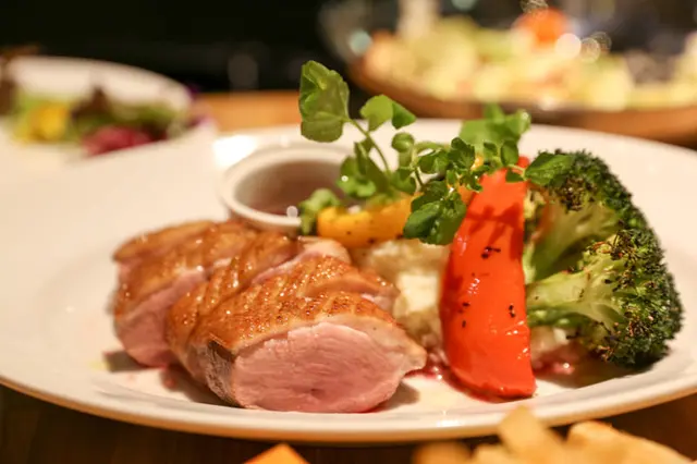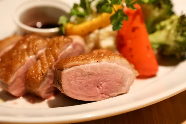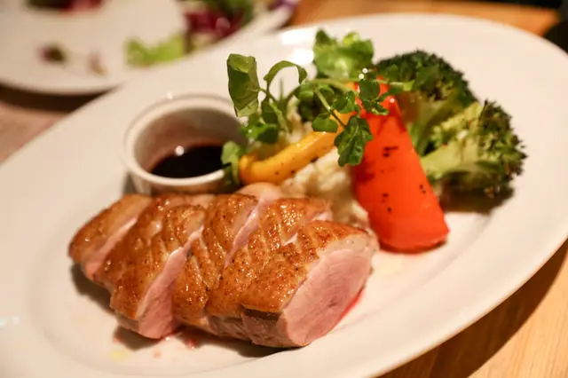 近年不讓牛豬專美於前的鴨胸料理,特色就是鴨皮的脆和粉紅的緊實肉色,這道光外觀就完全值得這價格!