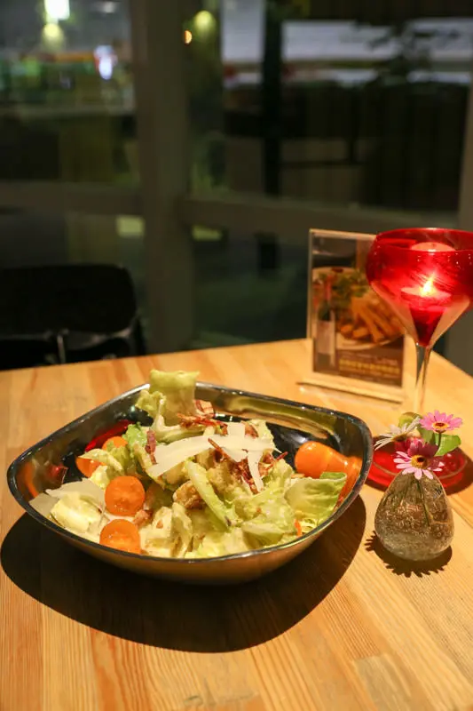 雖然凱薩醬畫一圈在蔬菜上頭,這樣的凱薩沙拉一定更適合拍照~但是凱薩醬都是存在最上層的美生菜,多半是吃到最後醬吃完,菜還有一半😂 這裡的沙拉是經過凱薩醬攪拌均勻的蔬菜,每一口都吃的到凱薩醬呢(莫名非常在意這種小地方)