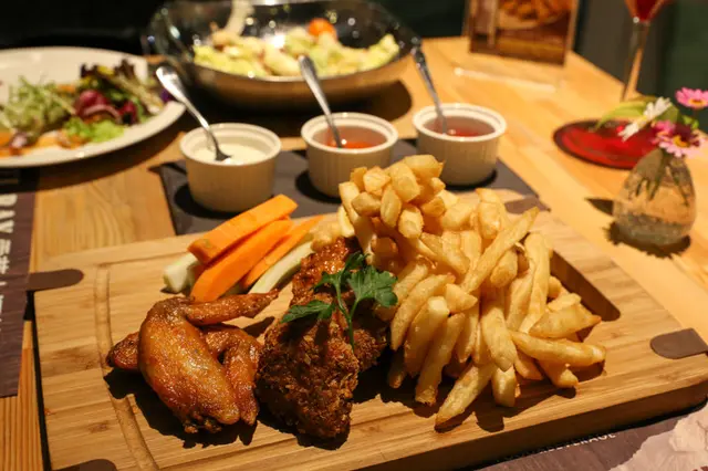 薯條、蝦球、魚球和雞翅一次擁有!道地泰式酸辣醬+Cream cheese 醬+偏酸蕃茄醬
